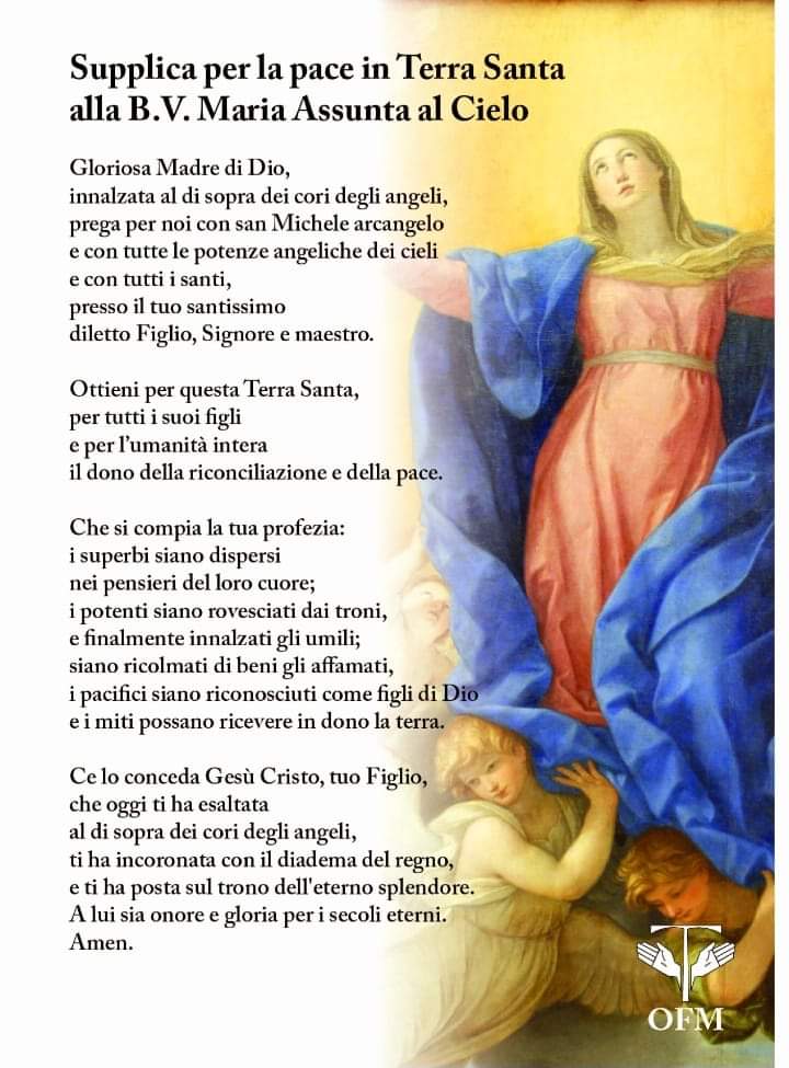 Patriarca di Gerusalemme dei Latini. Supplica per la pace alla B.V.Maria Assunta: https://www.lpj.org/it/news/requesting-from-hb-on-the-feast-of-the-assumption
